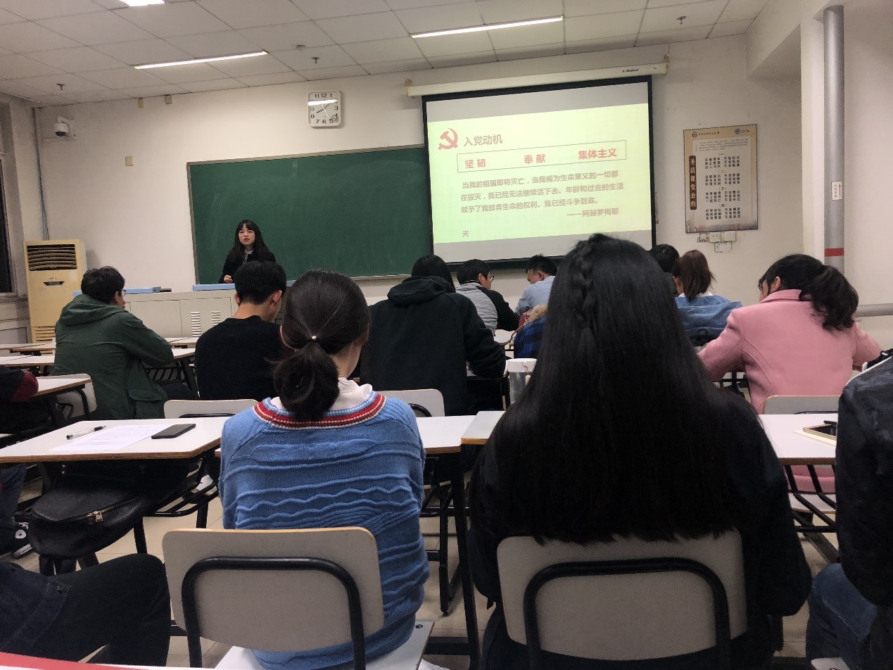 10月18日19时,金融学院2017级研究生党支部在博学楼624召开党员大会,讨论发展对象推荐评定工作,薛伟、路琰、张超、李爱婧、严雨、郑瀚、李鑫瑶、尹一豪到场依次进行展示。支部应到党员24名,实到18名。学院党务秘书常彪老师参加了本次会议。