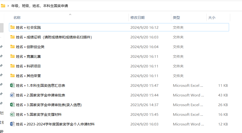 邮件及压缩包命名:年级+班级+姓名+本科生国奖申请