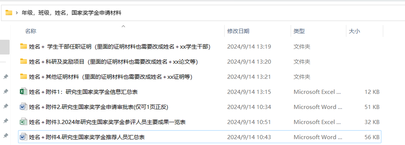 电子版表格请以压缩包形式报送至邮箱4751@cueb.edu.cn,邮件名以“年级+班级+姓名+研究生国家奖学金申请材料”命名。