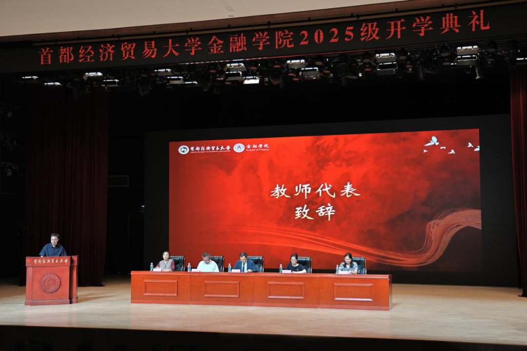 金融学院党委书记李玫玉、院长周开国、副院长陈奉先、副院长赵大萍, 2025级新生班主任以及学院辅导员,全体2025级本、研新生及部分新生家长出席,典礼由学院党委副书记王冬主持。