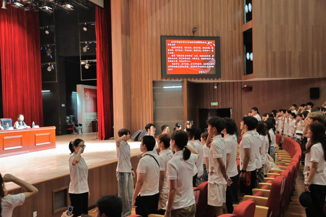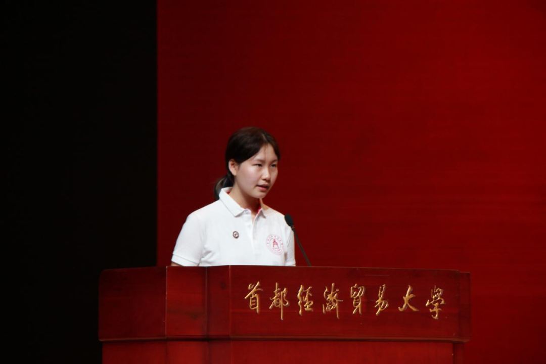 随后,在王睿远、许家桐、李博雅、王健齐、郝禹宁、刘雨昕六位同学的带领下,全体新生一同郑重宣誓。他们将恪守“崇德尚能 经世济民”之训,砥砺高尚品质,磨炼治业之功,肩负时代使命,为首都金融发展做出贡献,为实现中华民族伟大复兴不懈奋斗。