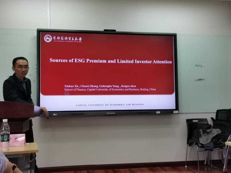 在论文汇报环节,金融学院刘怡君老师汇报了工作论文《Mind the Gap: Common Institutional Ownership and the Mitigation of ESG Rating Divergence》;徐新扩老师汇报了工作论文《Sources of ESG Premium and Limited Investor Attention》。