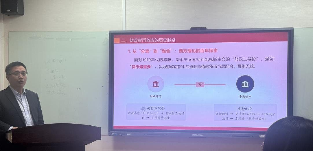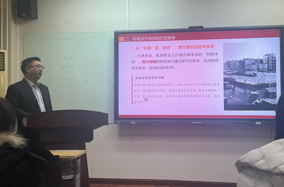 在2025年12月9日(周二)12:30-13:30,由首都经济贸易大学金融学院主办的首都金融论坛第219期暨论文研讨班第341期在明辨楼304顺利举行。本次研讨活动以“正确认识财政的货币效应”为核心主题,特邀知名金融学者、上海财经大学金融学院教授、博士生导师卞志村担任主讲人,学院师生通过线下参与的方式,围绕中国特色的财政金融关系、财政货币效应的历史脉络及其作用机制展开深度学术交流,会议由陈里璇老师主持,金融学院易祯、马思超、李雪、徐新扩、张路、章洪铭等老师及研究生共同参与,现场氛围热烈,互动环节交流深入。