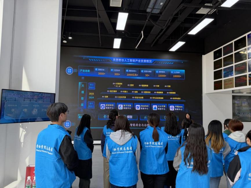 反诈宣传活动结束后,金融学院志愿者们集体参观了园区。石龙公司党员志愿者为大家详细介绍了园区的地理位置、资源优势和产业发展近况。大家了解到,园区在产业布局上,紧扣门头沟 “三大产业” 发展战略,形成了极具竞争力的科创生态。随后,金融学院志愿者们走进了京西智谷人工智能展厅,近距离感受人工智能产业发展成果;还参观了园区党群服务中心,学习了园区党建与产业发展深度融合的实践成果。