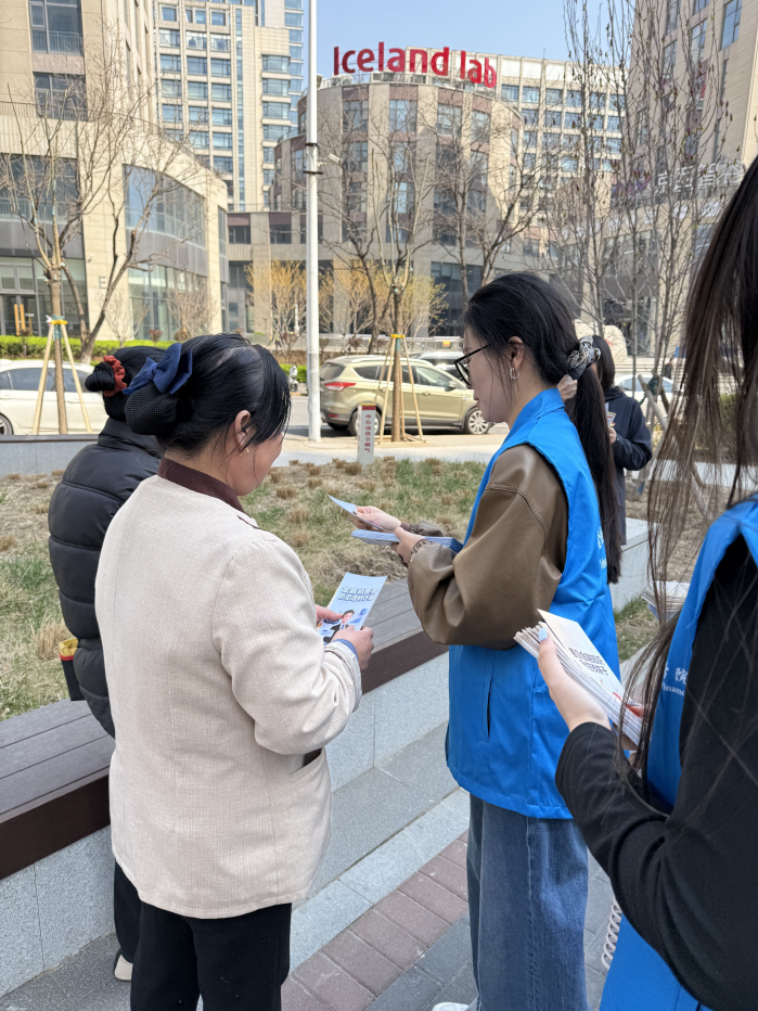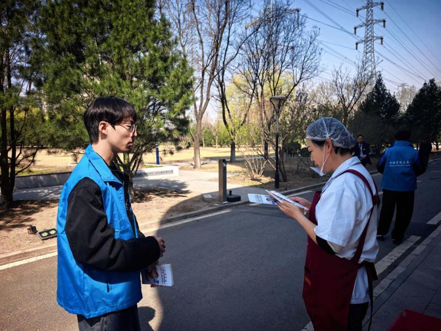 上午10点半,金融学院志愿者与石龙公司党员志愿者一同抵达园区。活动伊始,大家分成两支宣传小队,利用午休时段园区人员流动较为集中的时机,在园区办公楼宇、智谷大厦大厅及广场周边,向过往职工发放金融反诈宣传手册。传单精心梳理了“承诺高额回报”“编造虚假项目”“以虚假宣传造势”“利用亲情诱骗”等四种常见金融诈骗类型,用一案一警示的形式标注诈骗特征与防范要点,并附上使用金融产品建议,内容直观易懂、实用性强。双方志愿者结合园区企业集中、商务往来频繁的特点,重点向财务人员、商务对接人员讲解职场诈骗风险,提醒大家警惕陌生转账要求、虚假合同陷阱等职场常见诈骗场景。