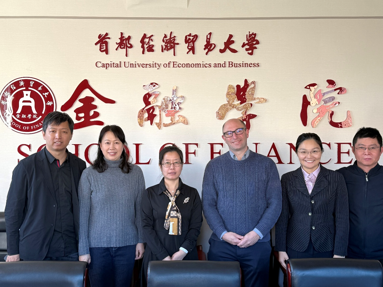 11月18日上午,奥克兰科技大学 Bart Frijns 教授莅临首都经济贸易大学金融学院交流访问。金融学院党委书记李玫玉、副院长赵大萍、金融系教授何枫等出席交流活动。