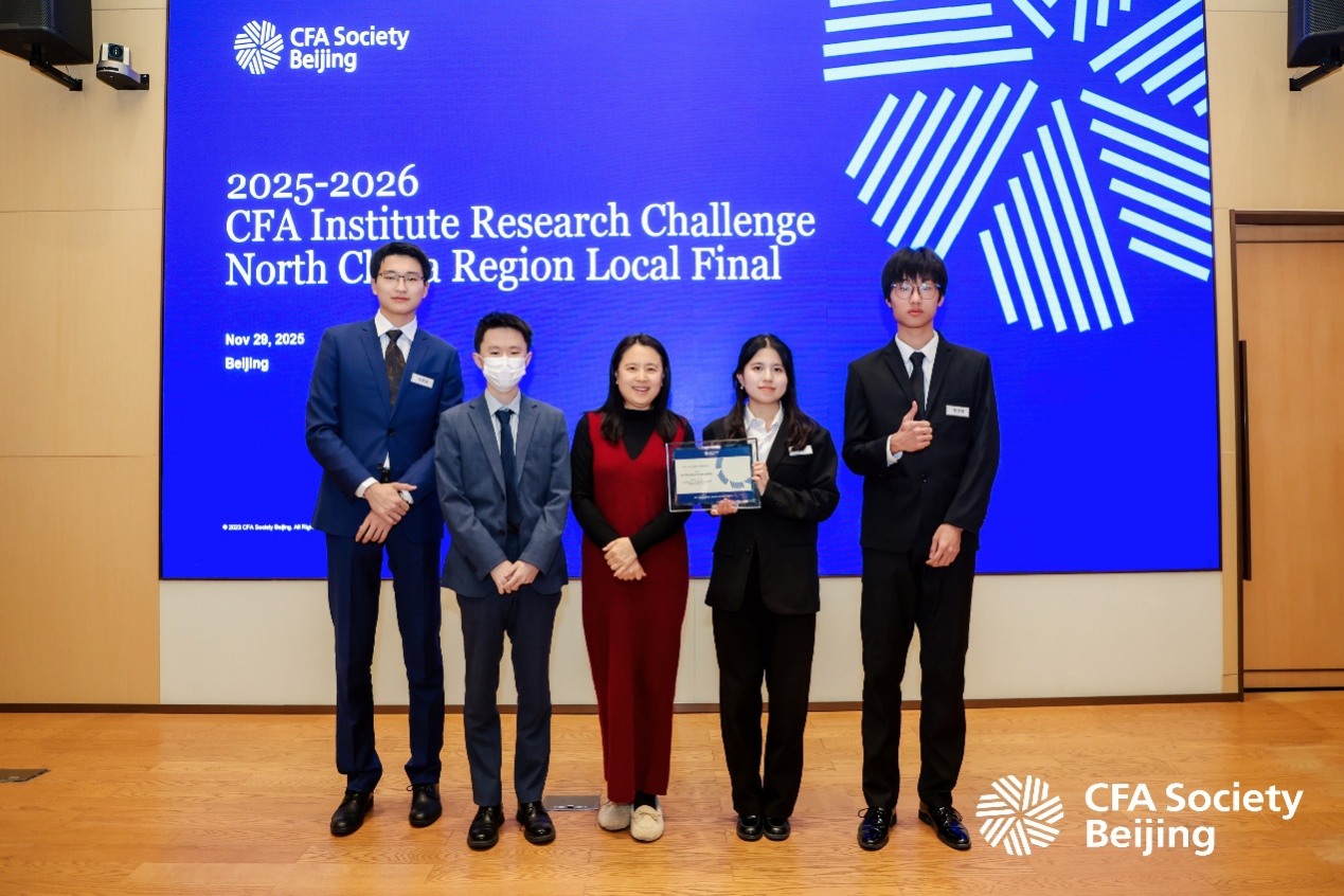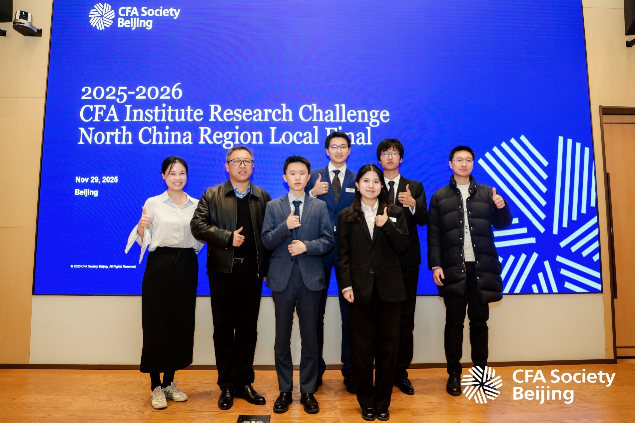 11月29日,CFA协会全球投资分析大赛(CFA Institute Research Challenge)华北赛区决赛在北京落下帷幕。首都经济贸易大学金融学院作为受邀院校首次组队参赛,与来自北京大学、清华大学、中国人民大学、中央财经大学、对外经济贸易大学、北京外国语大学、东北财经大学、外交学院等顶尖高校的代表队同台竞技。经过激烈角逐,我院代表队最终荣获华北赛区优秀奖,实现了我院在该项高水平赛事中的首次亮相并取得佳绩。