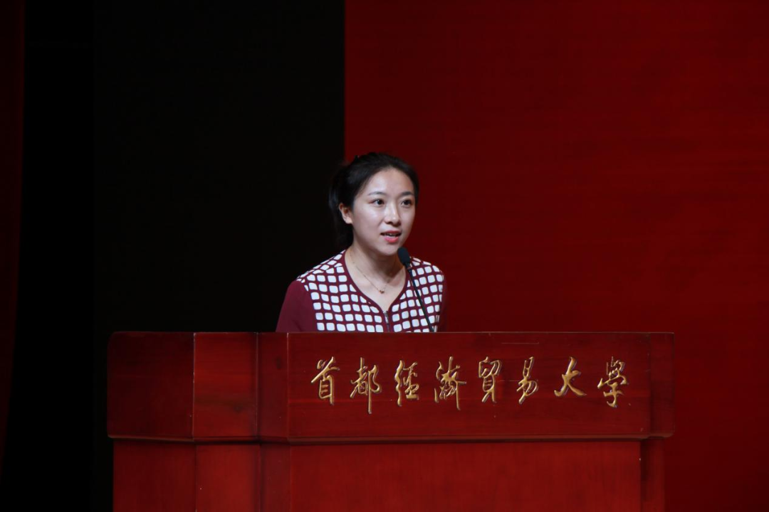2025级保险专硕赵悦同学作为研究生新生代表发言。她谈到,在研究生阶段,求知、探索自我和承担使命的重要性。既要在学术的深海中潜游,探寻经济运行的本质规律;也要在时代的旷野上行走,用专业能力回应民生的期待。