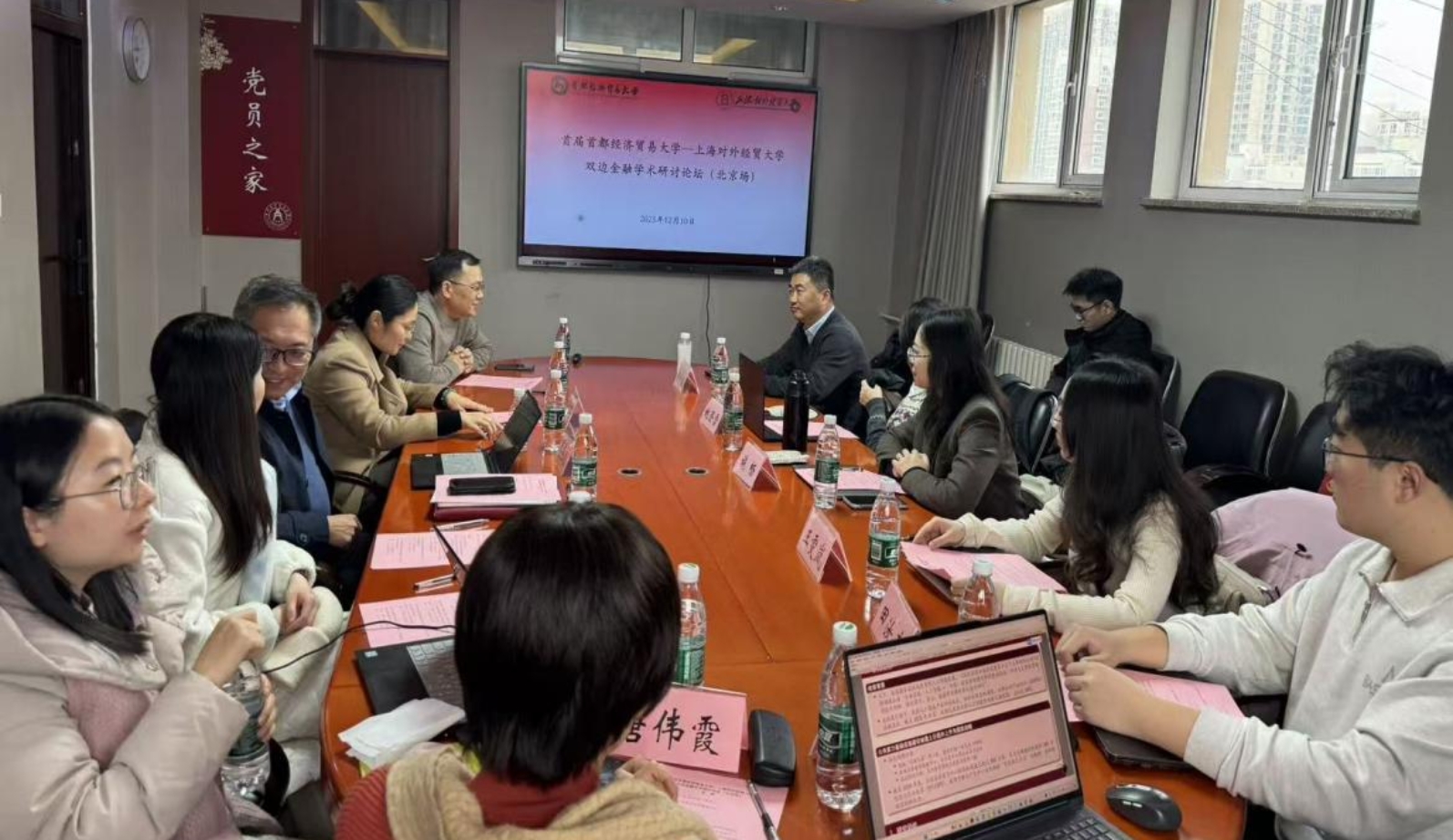 2025年12月10日,由首都经济贸易大学金融学院与上海对外经贸大学金融管理学院联合主办的首届双边金融学术论坛(北京场)在首都经济贸易大学明辨楼519举行。两院教师及研究生代表齐聚一堂,围绕金融前沿议题展开深入研讨与交流。