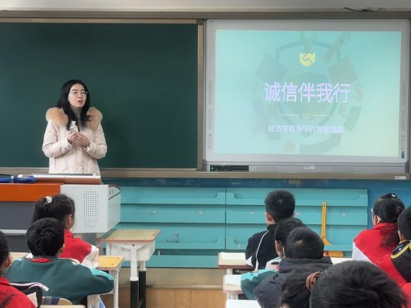 汪念玲老师赴大峪中学分校讲授《金融诈骗我不怕》课程,王强宇老师赴北京八中永定实验学校讲授《我是家庭理财师》课程,向同学们讲授基本的金融常识,帮助同学们提高对金融风险和防范诈骗的意识。