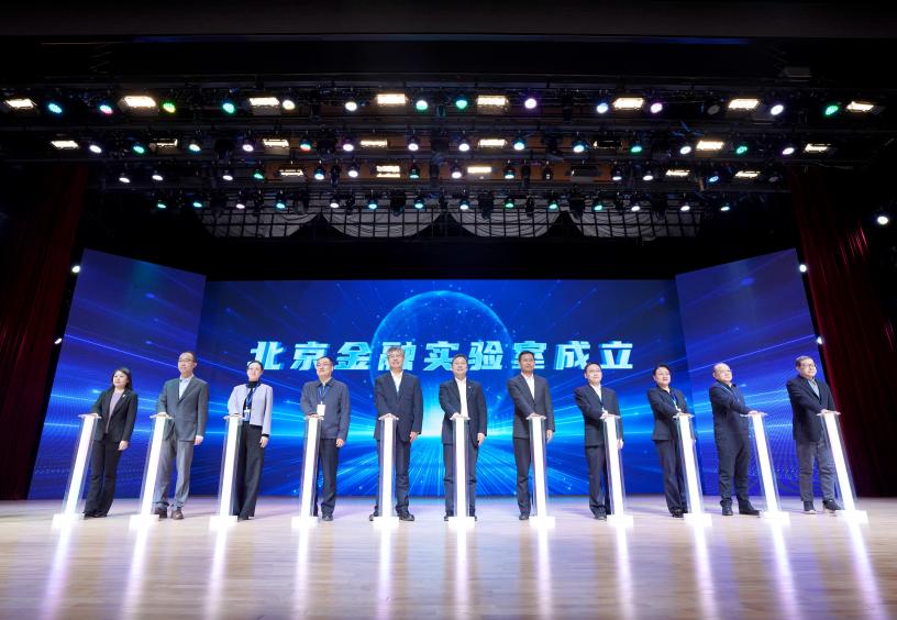 随后,在内蒙古财经大学校长金桩、北京金融控股集团有限公司总经理韩旭、中国融通财产保险有限公司党委副书记段家喜、中国农业银行北京分行副行长缪健、中共北京市委金融办研究室领导等与会嘉宾的共同见证下,北京金融实验室正式成立。
