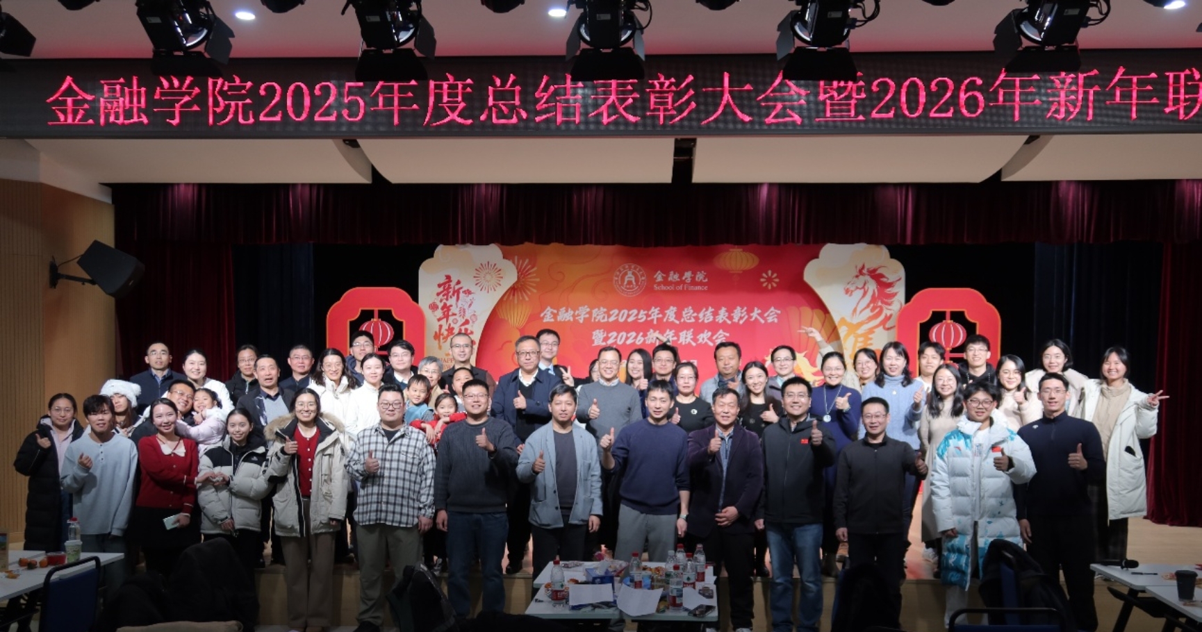 2026年1月12日晚18:00至20:30,金融学院联欢会现场张灯结彩、喜气洋洋,一场精彩纷呈的新年联欢会在此欢乐上演,学院师生齐聚一堂,共同迎接新年的到来。