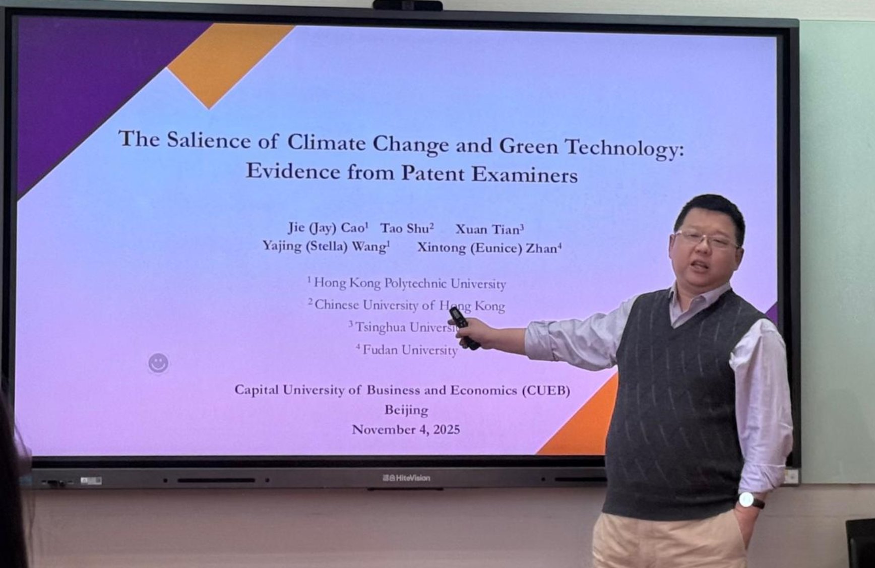 第218期首都金融论坛暨论文研讨班第340期:The Salience of Climate Change and Green Technology: Evidence from Patent Examiners2025-12-08 -