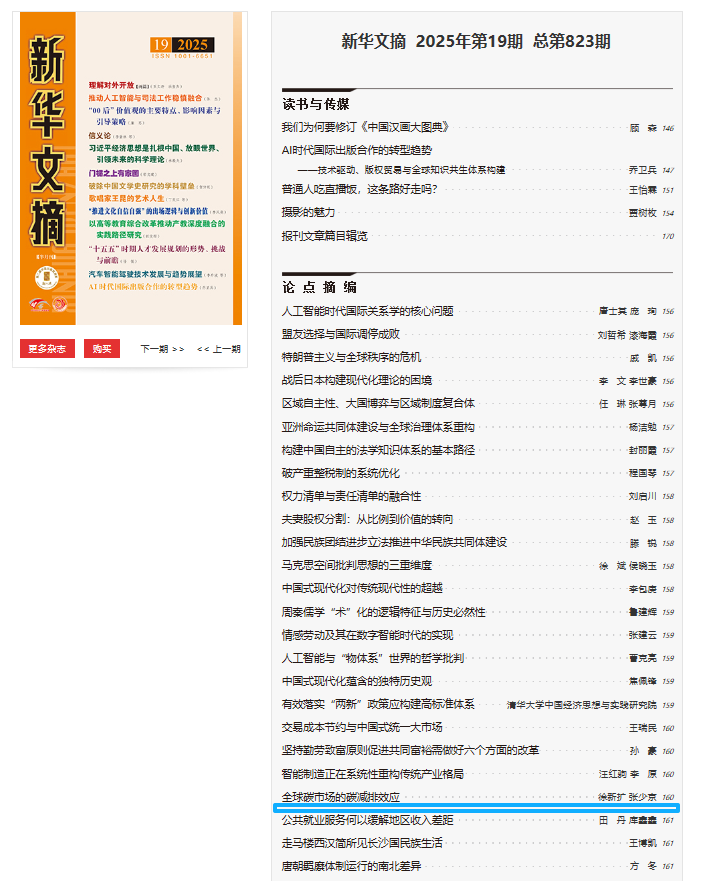祝贺!我院徐新扩副教授与博士毕业生张少京合作论文的核心观点被《新华文摘》转载!2025-11-07 -